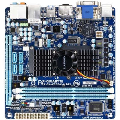 GIGABYTE GA-E350N-USB3 AMD E-350 APU (1.6GHz, ... Hudson-M1 FCH Mini ITX Motherboard/CPU Combo ... Wi-Fi A&V&GbE Mini ITX Motherboard. CPU: AMD Dual-Core E-350 APU ...